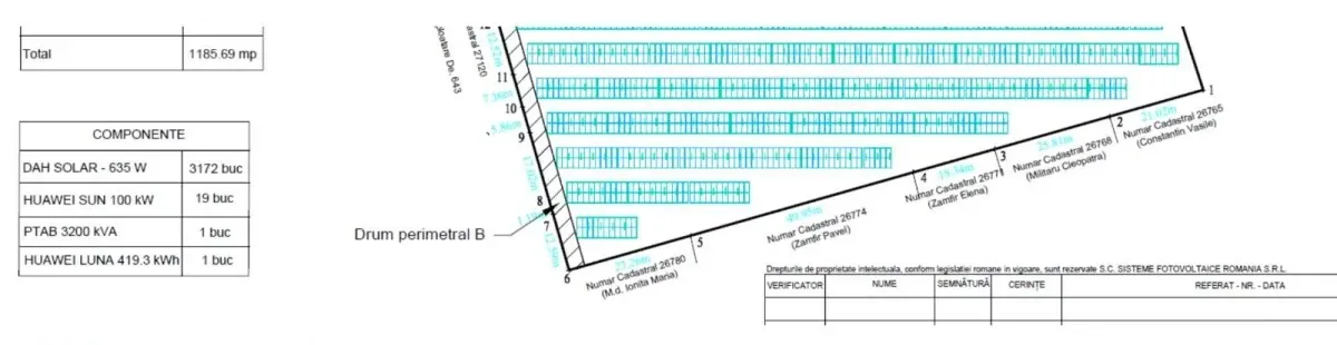 Sisteme Fotovoltaice Romania SRL – asigura realizarea proiectului pentru parcul fotovoltaic, ce are ca destinatie in principal consumul propriu al beneficiarului. Acesta poate fi instalat pe o suprafata plana, precum un teren.